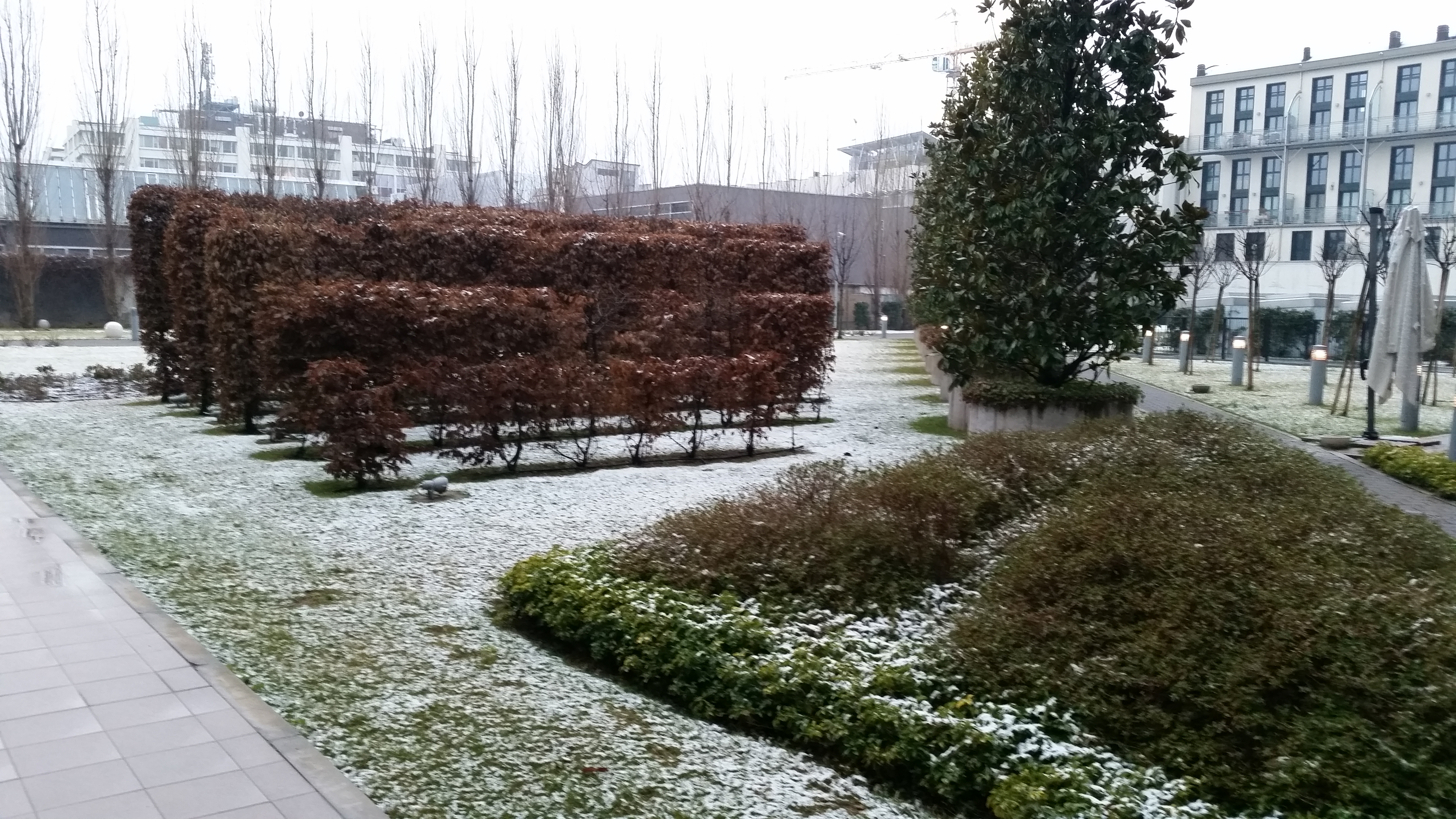 Le reste de la semaine fut un peu moins « spectaculaire ». Un des matins, il y avait de la neige partout!! Depuis quand il neige à Milan? Un peu cliché, comme nous au Québec qui vivons toujours du troc. Rien de spectaculaire, mais disons que les shorts et gougounes n’étaient pas de mise. Le vendredi, en retournant vers l’aéroport, on voyait les Alpes devant nous. C’est là que j’ai compris pourquoi c’était normal de recevoir de la neige en janvier à Milan…