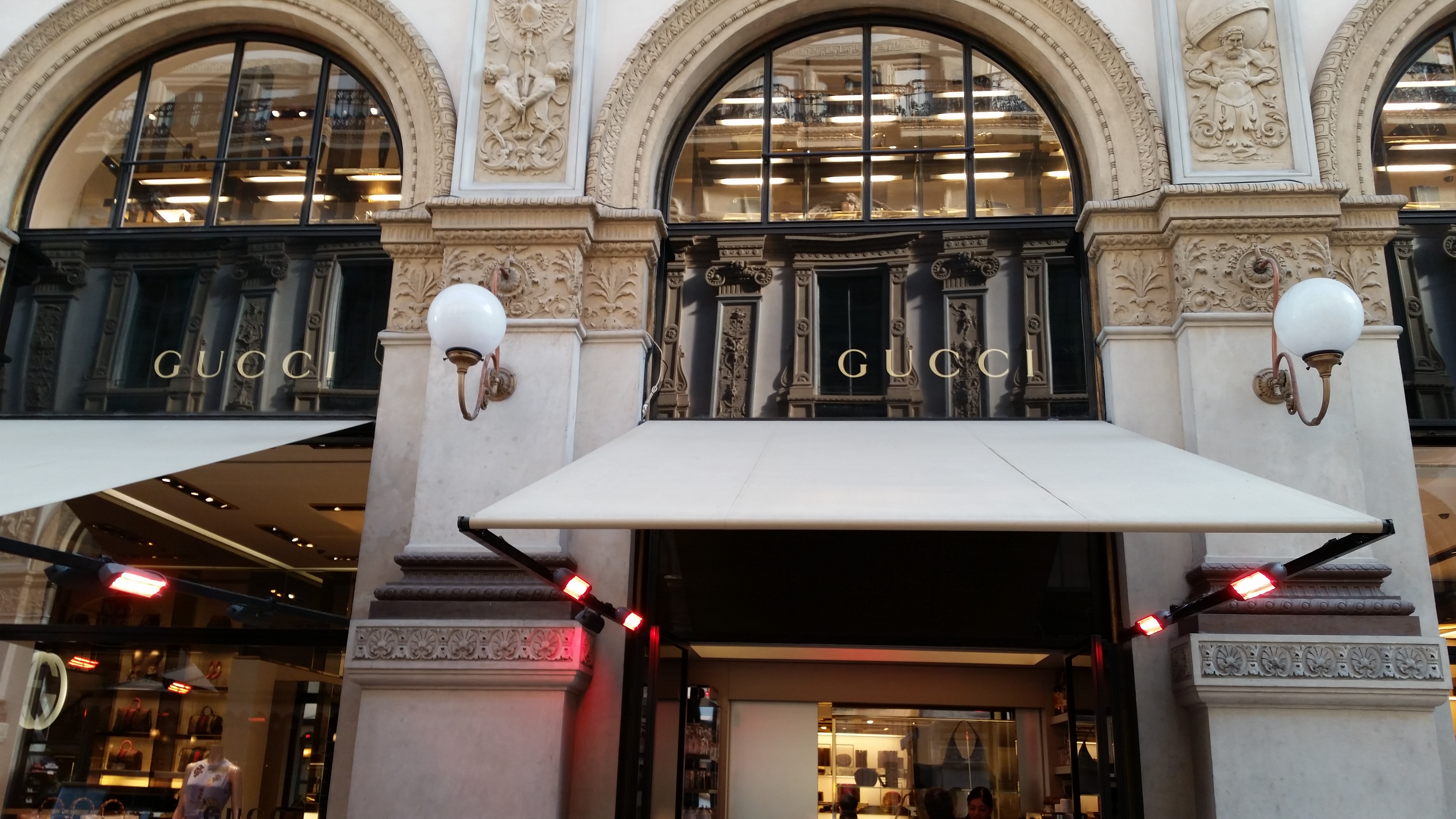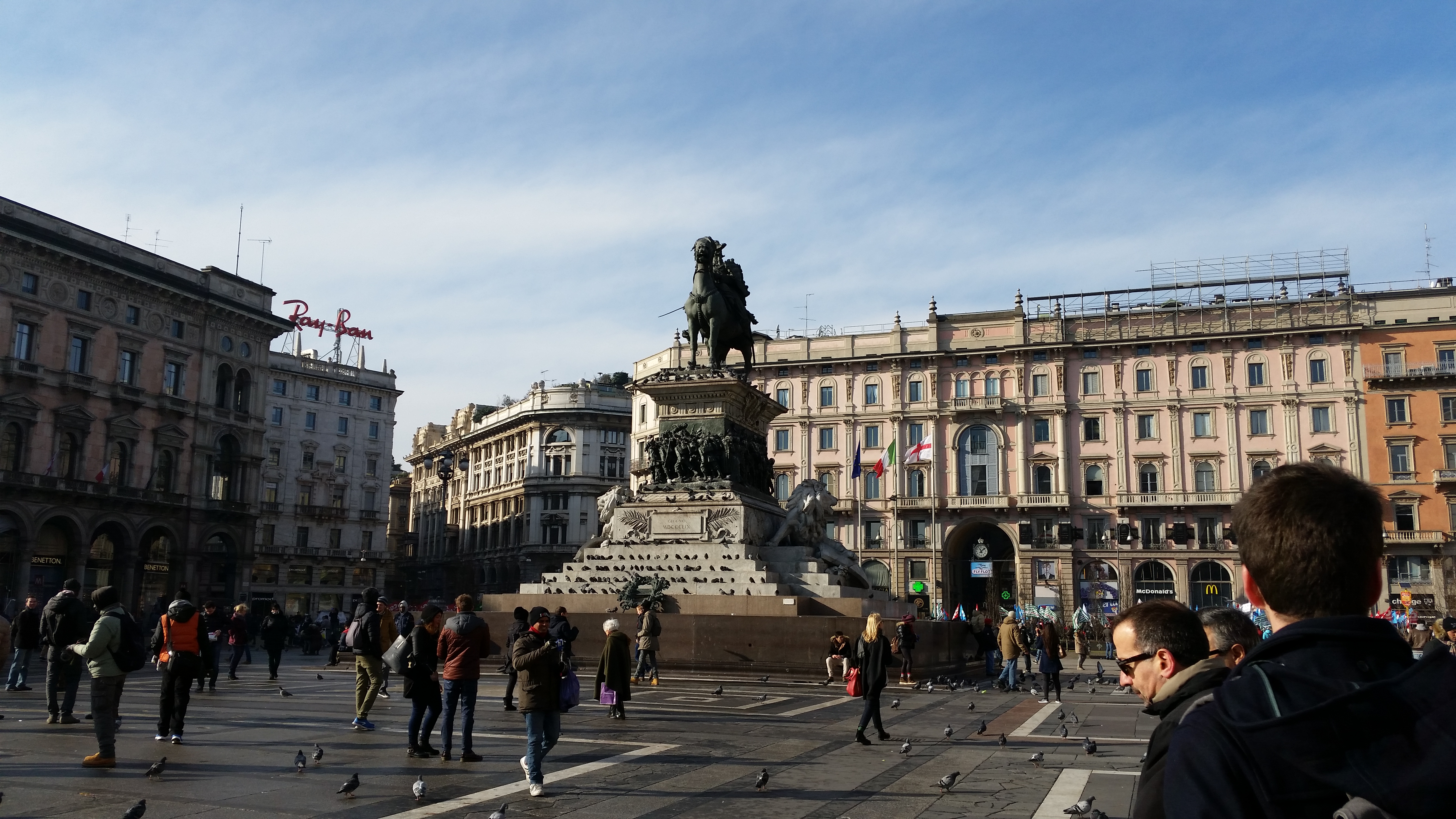 Nous sommes allés nous promener un peu le vendredi matin avant de retourner vers l’aéroport. La ville est très belle, beaucoup d’endroits spectaculaires, beaucoup de touristes, et de boutiques où on nous charge pratiquement juste pour regarder. On est allé dans un endroit connu sous le nom de « Galleria Vittorio Emanuele II ». Le genre de place où Nicole aurait besoin de vendre les deux autos et renouveler l’hypothèque avant d’y aller… Gucci, Prada, Louis Vuitton, Versace, Giorgio Armani, name it, ils y sont. Très beau, très chic, très cher…