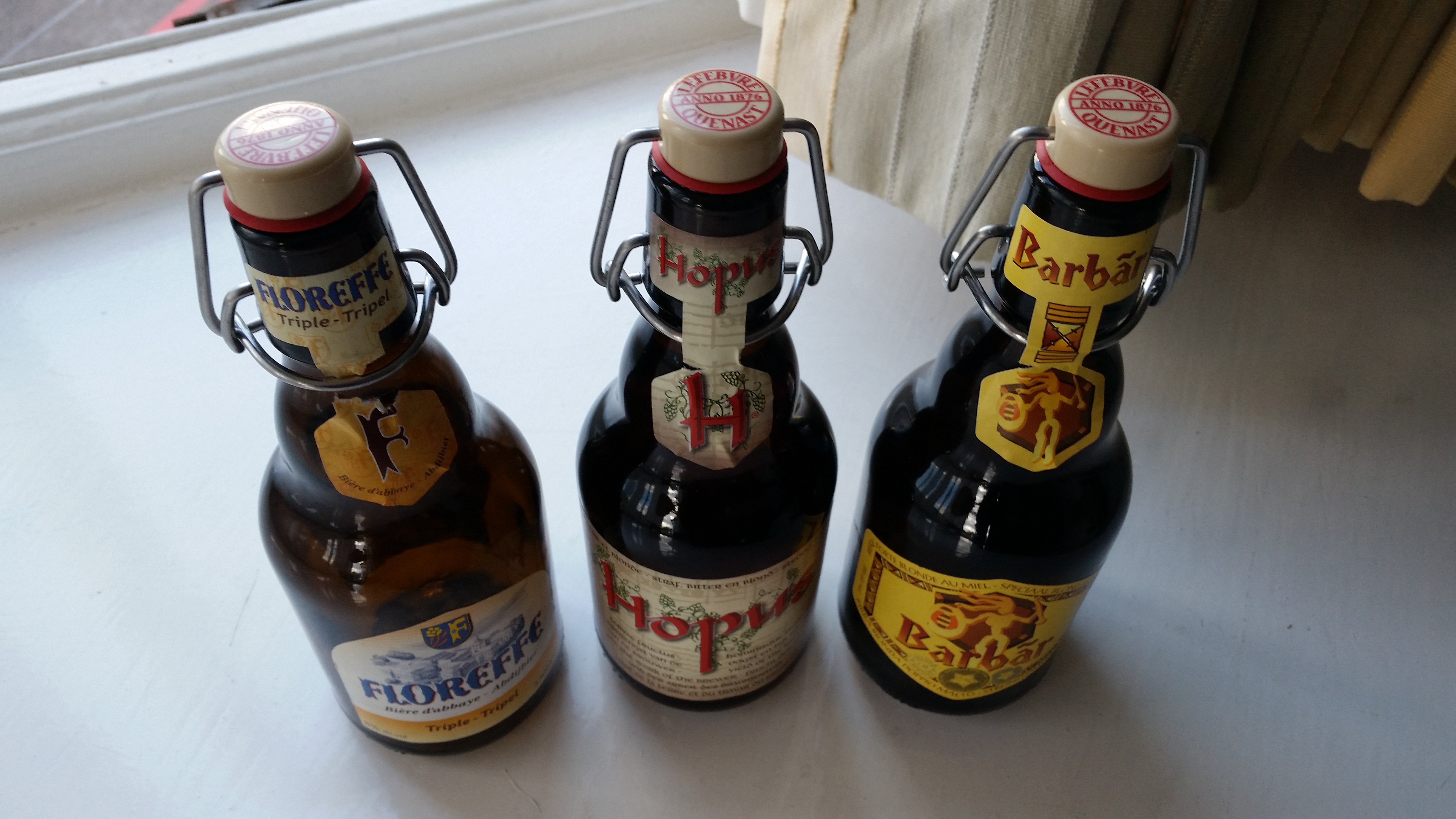 En chemin, nous passons devant commerçant de bière dont Pat avait entendu parler il y a un certain temps, on s’arrête. En faisant le tour, Tan me fait remarquer qu’une des marques de bière (qui ne fabrique malheureusement pas de bière sans gluten) est la brasserie Lefebvre! Cool, j’en achète juste par principe (il nous faut remplacer la bouteille de sirop d’érable Grolsh par une bouteille Lefebvre). En arrivant à la caisse, je mentionne au caissier (qui semble être le propriétaire) que je les achète juste à cause du nom. Nicole me dit qu’il a l’air insulté… Bon, il s’est quand même fait 8 Euros juste à cause de mon nom!