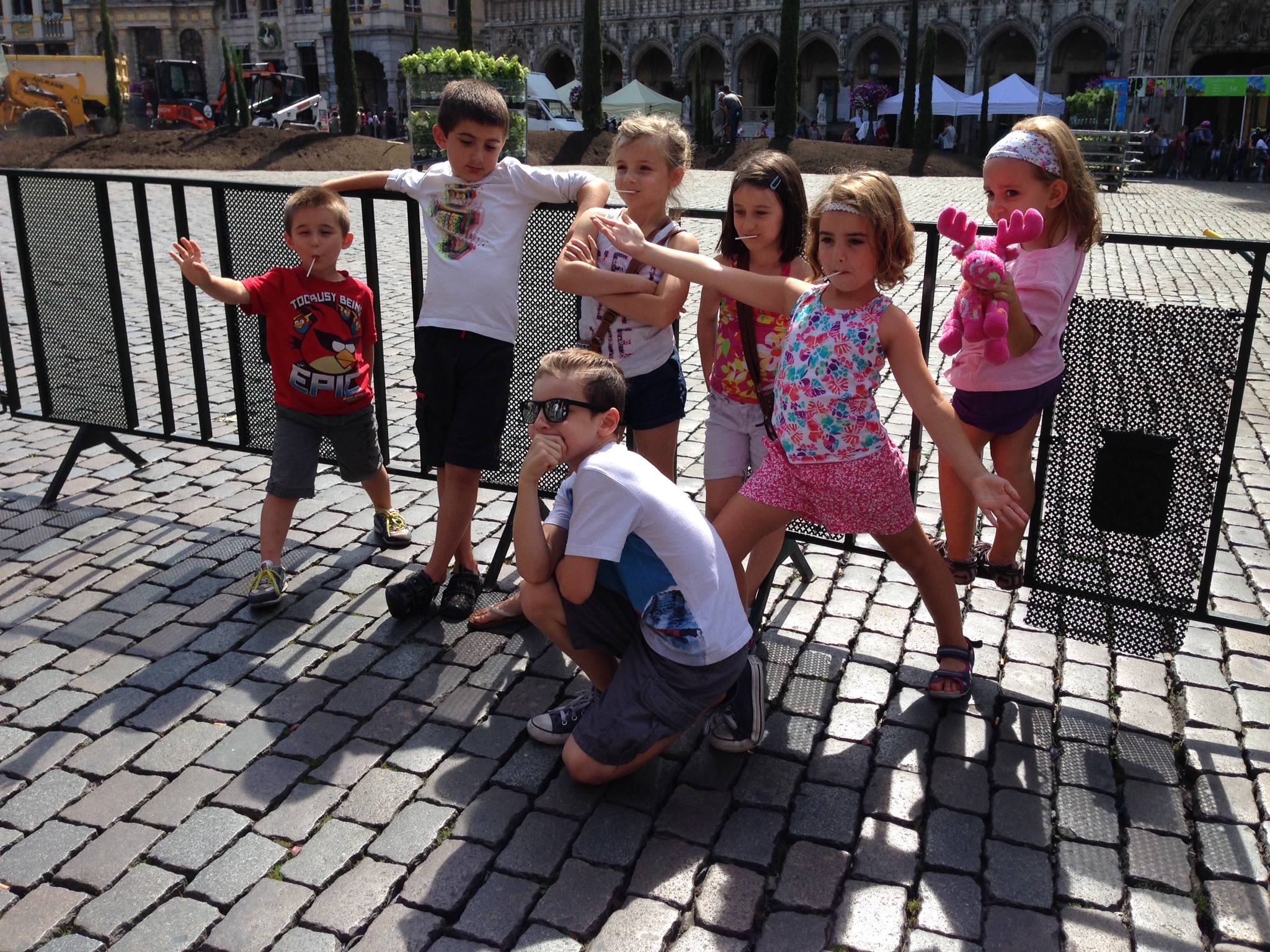 Dimanche matin, direction marché. On a une quinzaine de minutes à marcher, ça devrait réveiller tout l’monde. Une fois sur place, il y a de tout (c’est un marché!). Les filles partent de leur côté faire le tour des kiosques (elles ont le « cash »…), les boys « gardent » les enfants. Il y a un parc où ils peuvent aller brûler leur énergie. Juste à côté, un ancien wagon de tram est converti en « stand à patates ». On ne peut aller en Belgique sans se prendre de frites belges!! Les cocos sautent dedans comme s’ils n’avaient pas mangé depuis six mois, on mange ce qu’on peut. On recroise les filles par après, elles ont le nécessaire pour se faire un bon apéro digne de ce nom avant le souper!