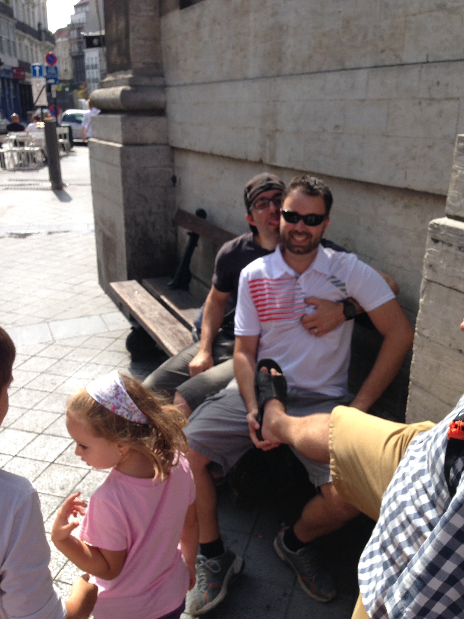 Une fois à Bruxelles, bon timing, Pat arrive au point de rendez-vous au même moment où nous sortons de la gare. Dès que les cocos l’ont vu, sourires instantanés! Ça leur a fait du bien de revoir un visage familier. Quand les cocos revoient Cédric, Maya et Nicholas, le party commence!!