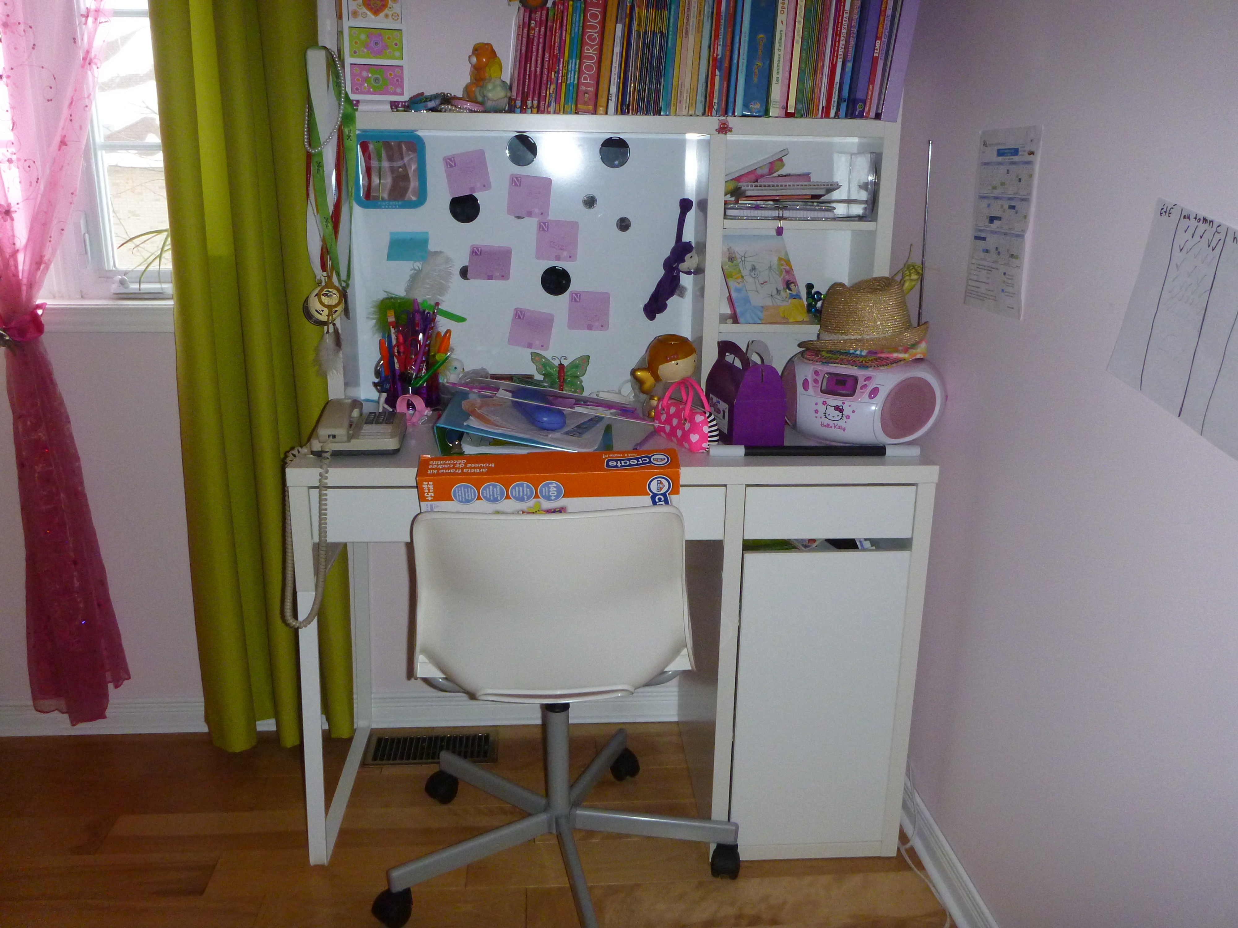 Meuble neuf, acheté avant l’époque des devoirs…  A par contre servi à maintes reprises comme meuble de “professeure” ou “directrice” d’école.