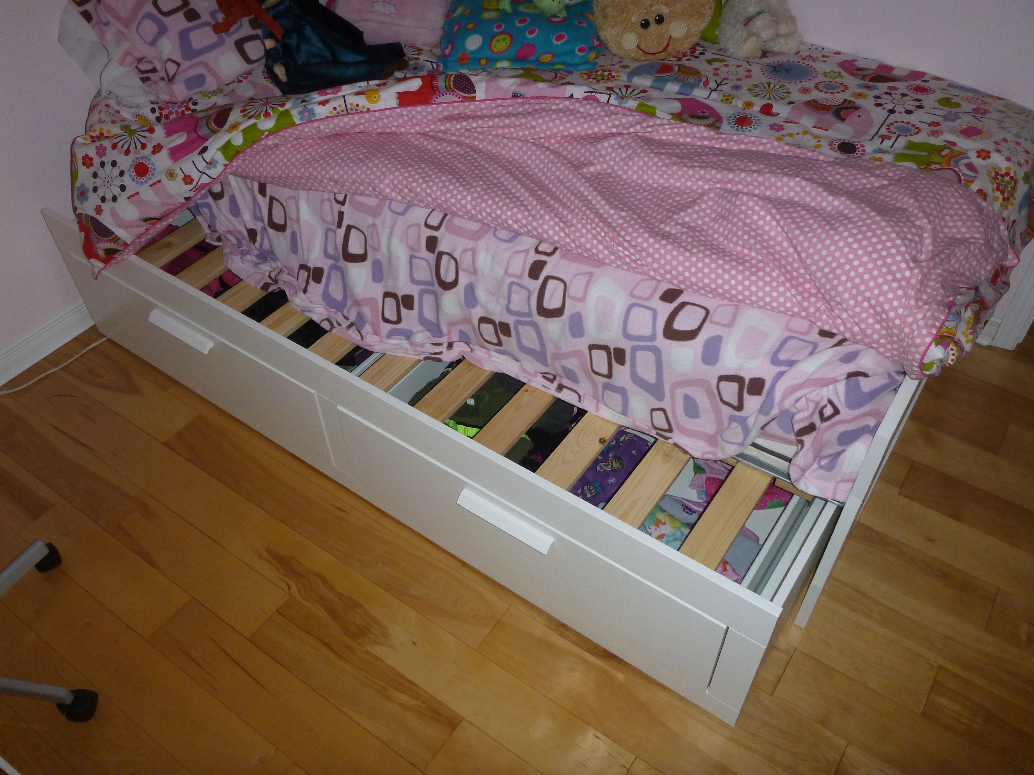 Lit pouvant être outvert qui le transforme en deux lits côtes à côtes.  Parfait lorsque votre cocotte reçoit des amies (notez bien le “e”!!).Lien Ikea: http://www.ikea.com/ca/en/catalog/products/40228708/